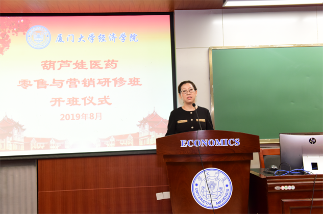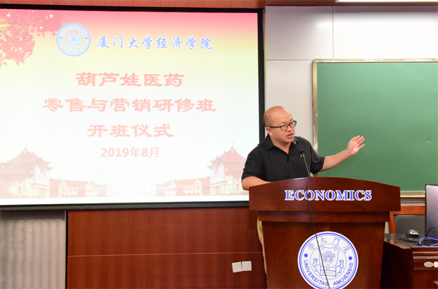 8月31日,PG医药零售与营销研修班开班仪式在厦门大学经济学院举行,为期8天的“厦大PG班”正式拉开帷幕。厦门大学经济学院继续教育中心主任廖景峰先生与PG药业集团董事长刘景萍女士分别在开班仪式上致辞,中国医药物资协会研究院执行院长代航先生担任本次研修班班主任并主持开班仪式。▲廖景峰主任在开班仪式上致欢迎辞