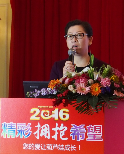今年公司营销中心将2015年的重点工作与2016年的规划展望凝聚成17个关键词,通过视频向与会人员进行了展示,有新意有亮点,引起了大家的强烈共鸣。PG药业集团今年已经满7周岁了,7年来公司产销量以年均30%的速度高速增长。集团能取得今天的成绩,离不开全体PG人的努力与付出。PG药业集团董事长刘景萍博士在总结表彰会上向PG的全体营销将士们表示感谢!字里行间的关爱让每个PG人都真切感受到了大家庭的温暖。董事长刘景萍博士致辞