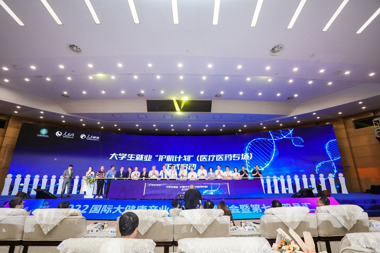 随后,刘景萍董事长受邀与医药行业嘉宾共同为2022国际大健康产业(重庆)博览会暨第七届双品汇、大学生就业“护航计划”(医疗医药专场)活动启幕。
